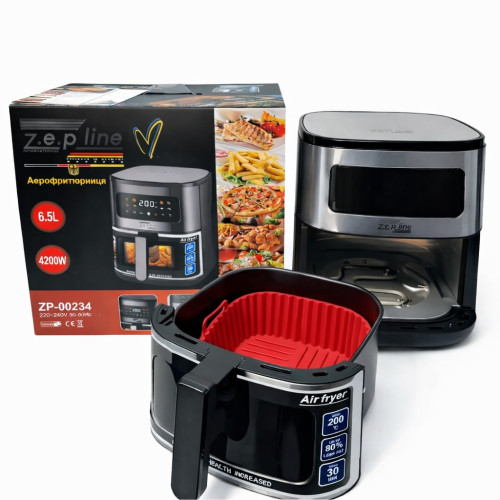 Аэрофритюрница Zepline ZP-00234 без масла, 6.5 л, 4200 Вт, семейная, с LED дисплеем и автоматическими режимами