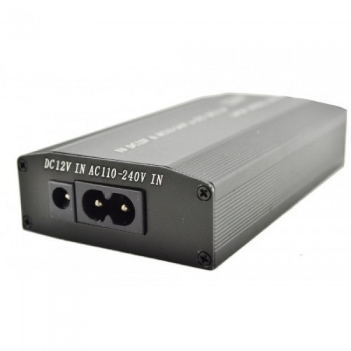 Адаптер для ноутбуков для ноутбуков MY - 150W поставляется вместе со специальным шнуром питания. Напряжение переключается при помощи бегунка, располагающегося на боковой части адаптера. Каждое последующее переключение будет отображаться на линейке зеленных светодиодов, напротив которых находится надпись с выходным напряжением. Вам всего-навсего потребуется подобрать нужную насадку, которая подойдёт под разъем имеющегося устройства.