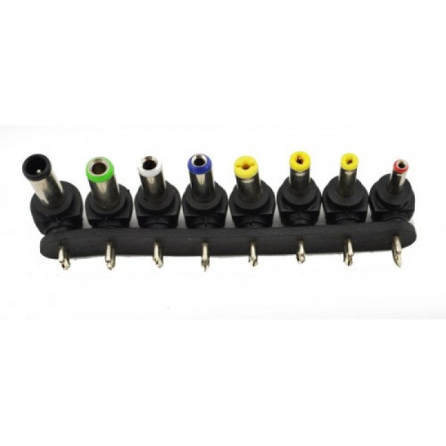 В комплекте 8 сменных разъемов: 6.0 х 4.4 мм, 6.5x4.3x1 мм, 5.0x3.0 мм, 5.5x1.7 мм, 4.8x1.7 мм, 4.0x1.7 мм, 2.5x0.7 мм, 5.5 x2. 5 мм (12мм).