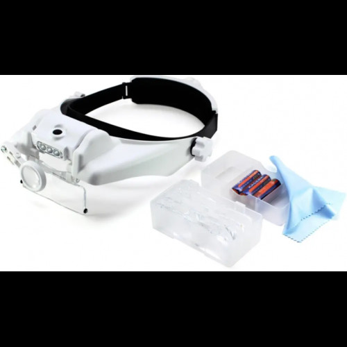 Бинокулярная налобная лупа Magnifier 81000G - надежные и комфортные в работе монтажные очки идеально подходят для надежной работы, с удобной настройкой под индивидуальные требования. Удобные формы, простота смены линз и настройка подсветки позволяет легко настроить монтажные очки, оставляя руки полностью свободными для работы. Популярный выбор для бытовой и профессиональной работы, востребованное решение для служб контроля и сервиса за электронным и прецизионным оборудованием. Теперь и плохое освещение, и проблемы со зрением не станут помехой в работе, позволяя легко разглядеть необходимые детали.
