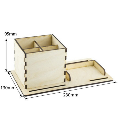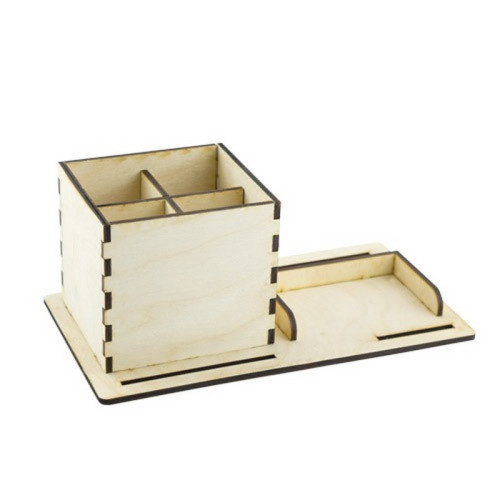 Набор-конструктор деталей из фанеры толщиной 4 мм, для сборки органайзера-подставки, основным назначением которой является организация хранения визиток и различных письменных принадлежностей (шариковых ручек, карандашей, кисточек, ножниц и др.).