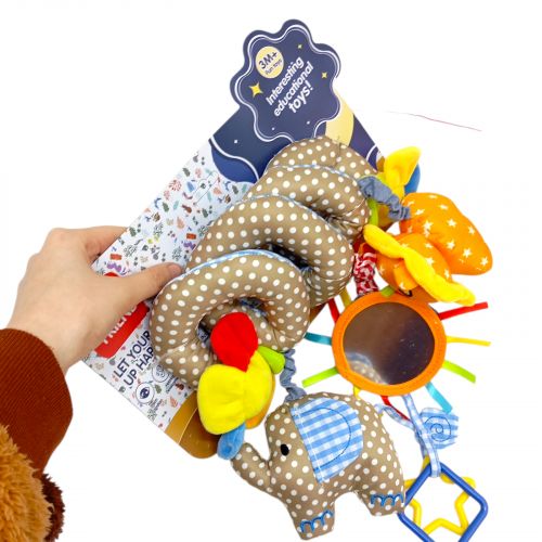 Погремушка животные мягкая спираль с прорезывателем, зеркалом лист.29*18,3 см.