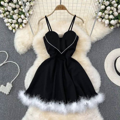 Праздничное платье Вырез в форме сердца+пышная юбочка и мех черный