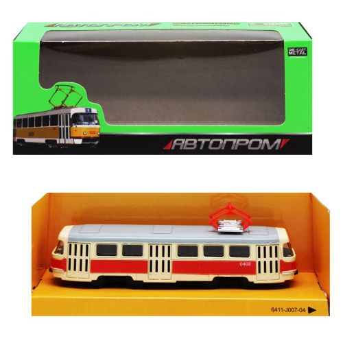 Трамвай инерционный из серии "Автопром". Выполнен из качественных и безопасных материалов, высокая детализация. Длина трамвая: 15 см.
