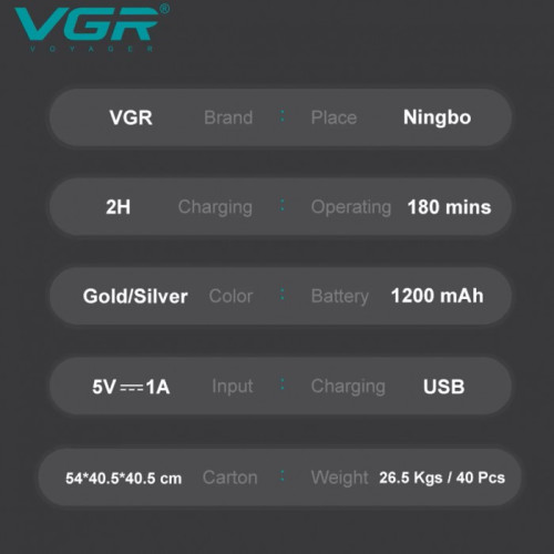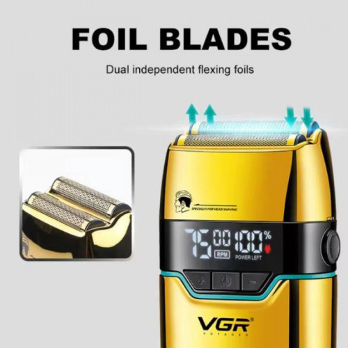 Электробритва VGR V-350 шейвер, двойное лезвие, 2 насадки, LED дисплей Золото