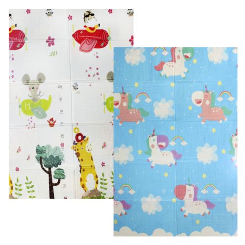Двухсторонний термоковрик будет хорошим подарком ребенку. Выполнен из качественного, безопасного материала, который не вызывает аллергии и не подвержен воздействию грибков и бактерий. Поверхность коврика смягчит удары при падении, защитит от холода, легко моется и не пропускает влагу. Компактно складывается в сумку. Размер коврика - 120х180 см. Материал: химически сшитый вспененный полиэтилен (XPE).