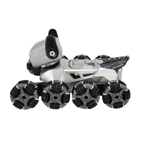 • Движение: робот-собачка может ехать во все стороны, вращается на 360 градусов, принимает различные позы – все это благодаря уникальной конструкции колес из 8шт, по 4 на каждом ряду.