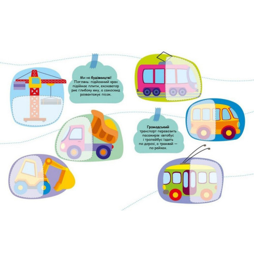 Книга «Ищем половинки. Транспорт» познакомит с наземным, водным, воздушным, общественным транспортом, машинами, которые работают в поле и на стройке, убирают улицы города и спасают людей от опасности.