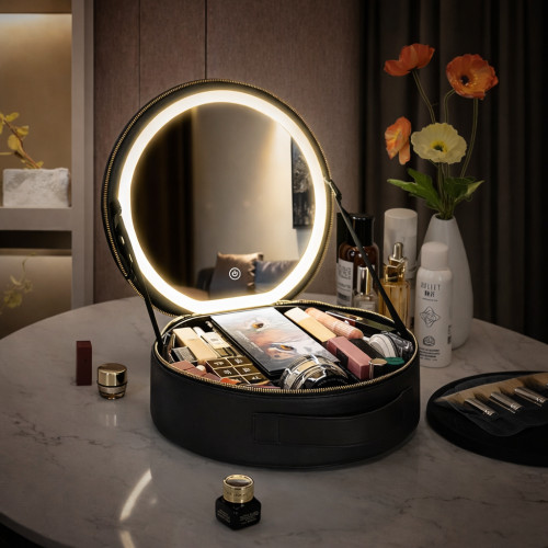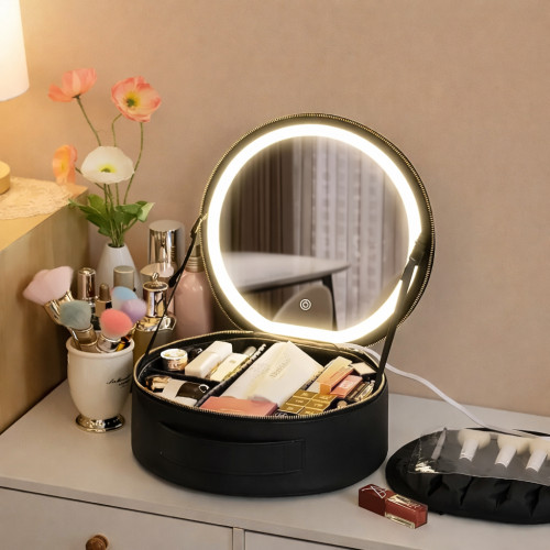 Встроенное LED-зеркало с тремя режимами подсветки позволяет комфортно наносить макияж в любых условиях. Внутреннее пространство продумано до мелочей: регулируемые перегородки помогают организовать всё аккуратно и удобно. Компактная форма, прочная молния и удобная ручка делают органайзер идеальным как для домашнего использования, так и для путешествий.