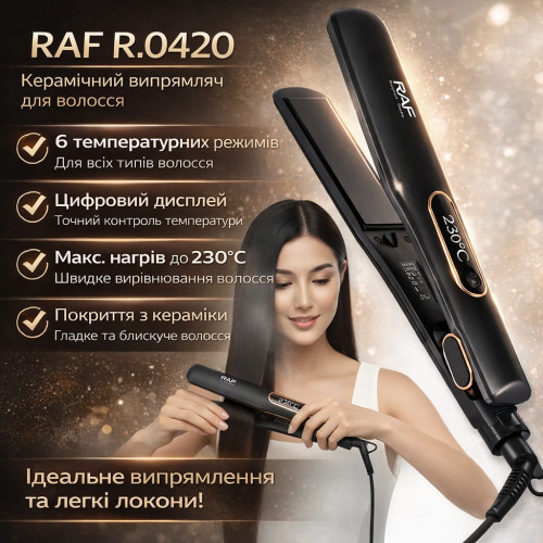 Керамический выпрямитель для волос с дисплеем и 6 температурными режимами RAF R.0420 45W