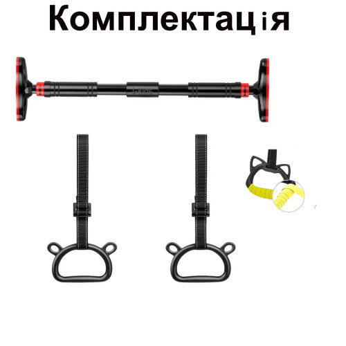 Турник без винтов 130-157 см для подтягивания с кольцами до 300 кг в дом TYRNIK-1