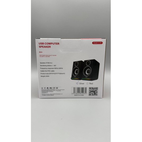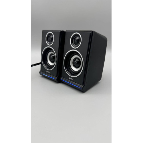 Колонки JEDEL S-578 расширяют аудиовозможности домашнего компьютера или ноутбука. Слушайте качественный звук через устройство, состоящее из двух миниатюрных приборов. Благодаря своему размеру изделия не занимают много места на столе. Также их удобно переносить. Питание на колонки подаётся от USB а звук воспроизводится с mini jack 3.5 мм. Если Вы хотите подключить колонки к компьютеру, ноутбуку, планшету, телефону, телевизору Вам нужно подключиться к USB и mini jack подключить в линейный выход или в наушники. Если Вы хотите слушать с МП3, DVD плеера или другого устройства без USB, то вам нужно будет подключать разъём USB в сетевой адаптер или powerbank. Колонки JEDEL S-578 это компактные стерео динамики в корпусе из пластика. Использовать данную акустическую систему можно повсеместно – ноутбук, MP3-плейер, смартфон, CD-плейер – достаточно подключить USB и 3.5 мм стерео-джек. Две колонки общей мощностью 6 Вт обеспечивают качественный звук.