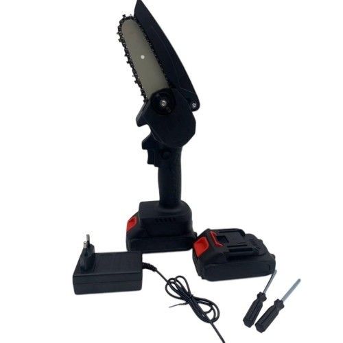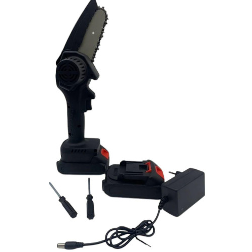 Цепная аккумуляторная мини пила Сhainsaw 24V - незаменимый помощник в саду, на дачном участке и в частном доме. Пила отлично подходит для обрезки деревьев и кустарников, для рубки и измельчения садовых отходов, а также для небольшого строительства из дерева. Она имеет встроенный электродвигатель, который обеспечивает высокую производительность. Инструмент способен резать небольшие ветви, а также квадратные и круглые пиломатериалы.