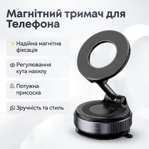Описание Надежный вакуумный магнитный держатель с технологией MagSafe — идеальное решение для безопасного использования смартфона в автомобиле. Мощный неодимовый магнит силой 20N обеспечивает мгновенную и сверхпрочную фиксацию телефона, а вакуумная присоска выдерживает нагрузку до 5 кг даже на неровных дорогах и при резких маневрах.