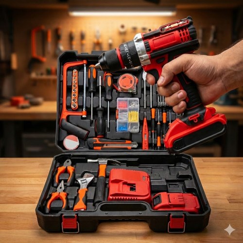 Описание Многофункциональный ремонтный комплект, объединяющий мощный аккумуляторный шуруповерт и обширный набор ручного инструмента из 118 предметов. Идеальное решение для комплексного выполнения монтажных, слесарных и строительных задач без необходимости покупки отдельной оснастки. Шуруповерт оснащен надежным двигателем и питается от аккумулятора 48V, обеспечивая высокую производительность при сверлении и работе с крепежом. Весь инвентарь компактно размещен в ударопрочном пластиковом кейсе, где каждая деталь имеет свое посадочное место, что гарантирует порядок и удобство транспортировки. Этот набор закрывает 99% потребностей домашнего мастера и профессионала при выездных работах.