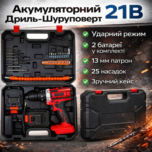 Мощность 21V: Высокая производительность для сверления твердых материалов и работы с длинным крепежом.