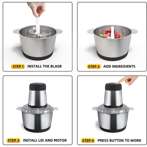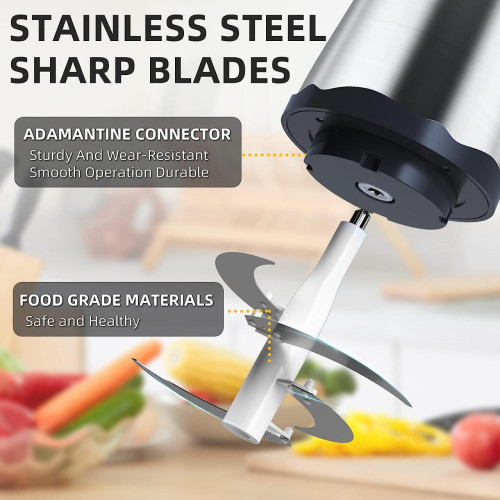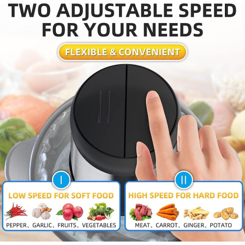 Благодаря 2-скоростному управлению электрический измельчитель позволяет свободно выбирать точный контроль для получения идеальной текстуры ваших ингредиентов. выберите правильную рабочую скорость, чтобы служить вам.