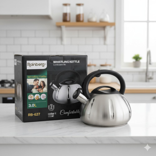 Чайник для электрических и газовых плит Rainberg RB-627 3 л со свистком, из нержавеющей стали