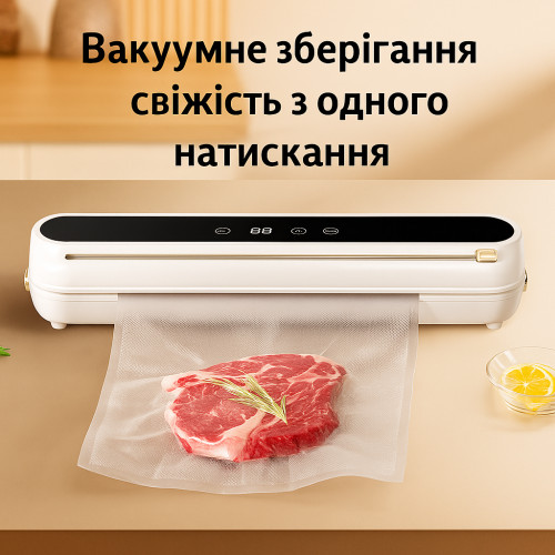 Вакуумный упаковщик 120Вт — удобное устройство для герметичной упаковки продуктов, позволяющее значительно продлить срок хранения и сохранить свежесть еды. Благодаря высокой силе всасывания и нескольким режимам работы, он подходит для мяса, рыбы, овощей, фруктов, орехов, сыров и других продуктов.