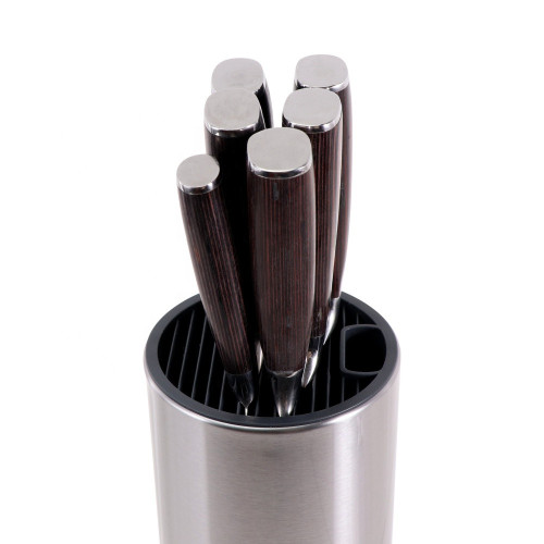 Многофункциональная подставка-держатель для ножей выполнена из прочной нержавеющей стали и предназначена для удобного и безопасного хранения кухонных принадлежностей. Конструкция органайзера позволяет разместить ножи разных размеров, кухонные лопатки, ложки и другие инструменты, поддерживая порядок на рабочей поверхности. Материал устойчив к коррозии, не впитывает запахи и легко очищается, что делает подставку удобной в ежедневном использовании.