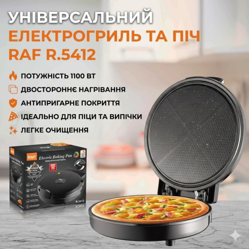 Описание Электрическая сковорода-блинница RAF R-5412 мощностью 1100 Вт — идеальное решение для быстрого и вкусного завтрака или ужина без лишней посуды. Антипригарное покрытие обеспечивает равномерный нагрев и легкое приготовление без масла: блины, оладьи, стейки, сэндвичи, омлеты, овощи-гриль и многое другое.