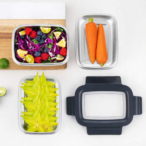 Контейнер подходит для хранения готовых блюд, салатов, гарниров, мяса, овощей и других продуктов как дома, так и вне дома — на работе, в поездках или на пикнике. Оптимальный объём 1 литр делает его универсальным для ежедневного использования. Минималистичный серый дизайн выглядит аккуратно и современно, легко вписываясь в любой кухонный интерьер.