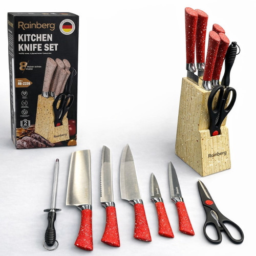 Кухонный набор ножей Rainberg RB-2328 — это функциональный комплект для ежедневного использования на домашней кухне, который включает все основные инструменты для подготовки продуктов и удобного хранения.