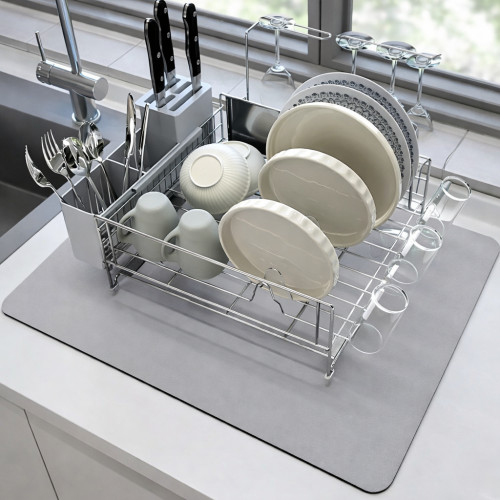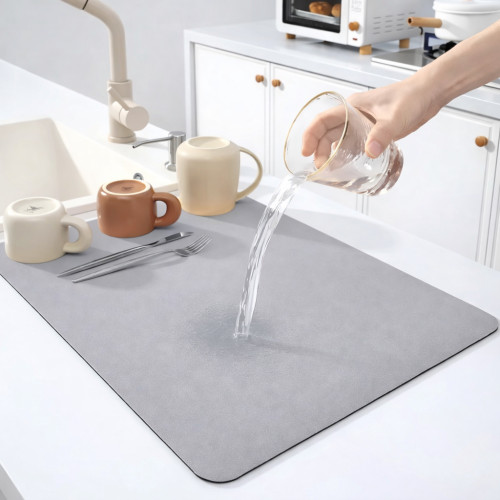 Коврик для сушки посуды — практичное решение для организации пространства возле мойки и защиты кухонной поверхности от влаги.