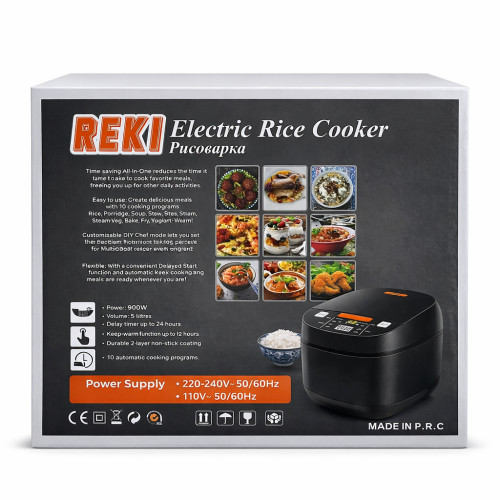 Электрическая рисоварка REKI AI-001A предназначена для приготовления риса и других блюд в автоматическом режиме. Устройство оснащено чашей объёмом 5,0 литра, что подходит для приготовления блюд на семью или небольшую компанию.