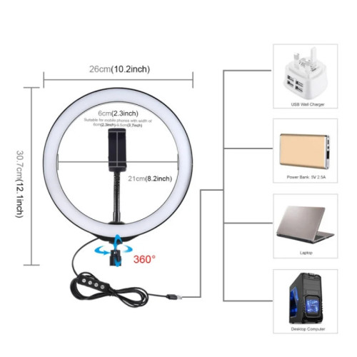 Кольцевая светодиодная Led лампа для блогера селфи фотографа визажиста D 26 см Ring