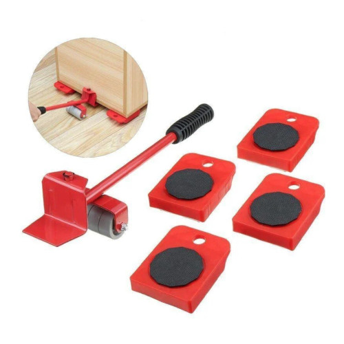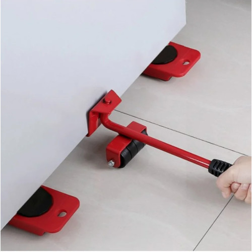 Набор предназначен для транспортировки различных тяжестей, весом не более 150 кг. При помощи рычага, который отличается достаточной прочностью, так как изготовлен из стали, поднимается необходимый груз. При помощи данного устройства поднимается край изделия, и вставляется пластина с роликом, мебель опускается. Далее роликовые опоры устанавливаются под мебель. Такие действия необходимо провести со всеми углами изделия, которую необходимо переместить.