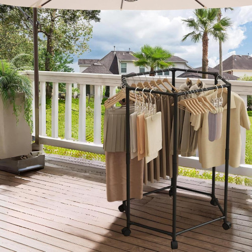 Напольная вешалка для одежды с поворотным механизмом на 360° и колесами
