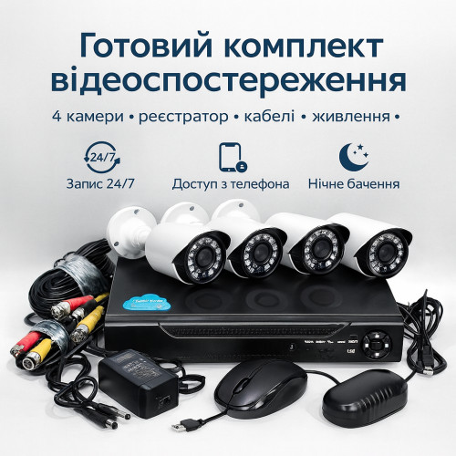 Набор уличных камер видеонаблюдения DVR KIT 7004 AHD 4ch Gibrid регистратор и камера для дома