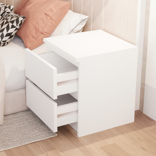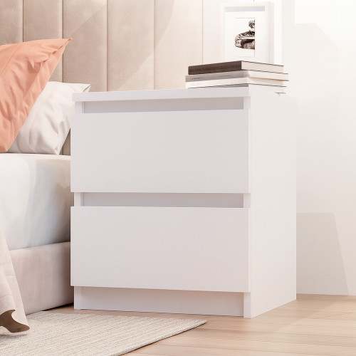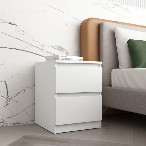 Прикроватная тумба без ручек с двумя ящиками, белая, STL-MD 78 30×32×41 см