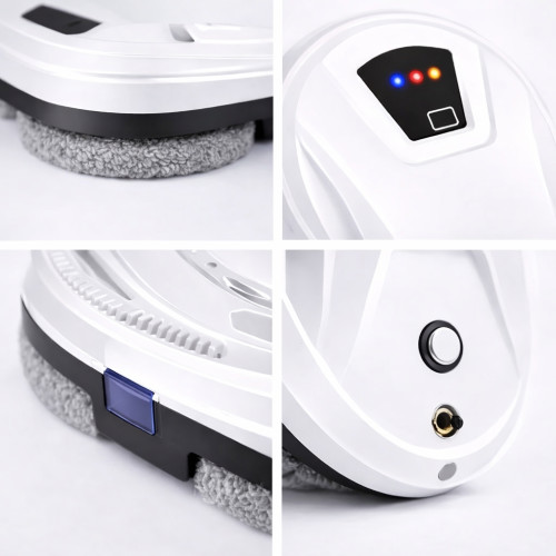 Прикрепите робота к стеклу → включаетсяе → нажимаете кнопку на пульте (или в приложении) → и все. Он самостоятельно двигается по вилетне, распыляет воду ультразвуковым способом (очень мелкий туман, грязь размягчается мгновенно), вытирает микрофиброй и оставляет идеальную чистоту без какого-либо подтека.Головные преимущества: