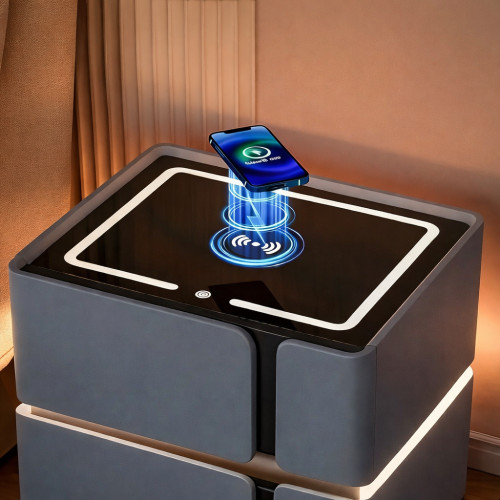 Умная прикроватная тумба SZXF01 с Bluetooth-колонкой, USB и сенсорной подсветкой, 2 выдвижных ящика, МДФ/экокожа, серая