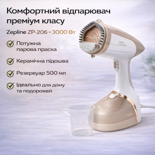 Отпариватель Zepline ZP-206 Бежевый- портативный утюг-отпариватель для одежды