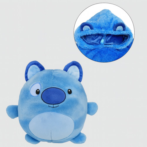 Толстовка-плед легко трансформируется в игрушку, а затем обратно — в уютное худи с капюшоном и рукавами.