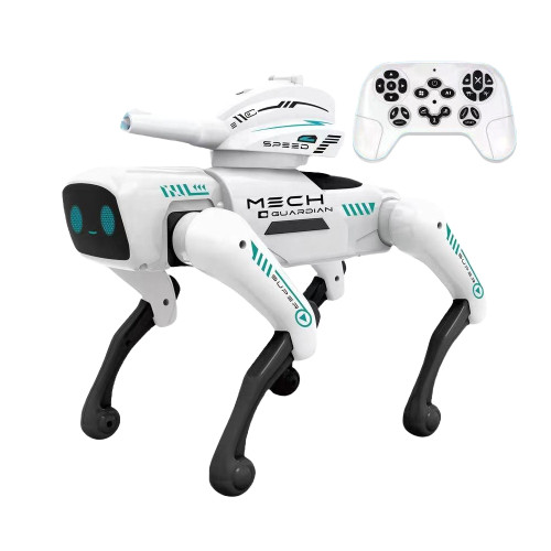 Робот‑собака Mech Guardian QF660‑2 — высокотехнологичная и интерактивная игрушка нового поколения, которая превращает игру в настоящее приключение. Этот робот сочетает характер настоящего четвероногого питомца, функции дистанционного управления и программирования, а также эффектное световое и звуковое сопровождение.
