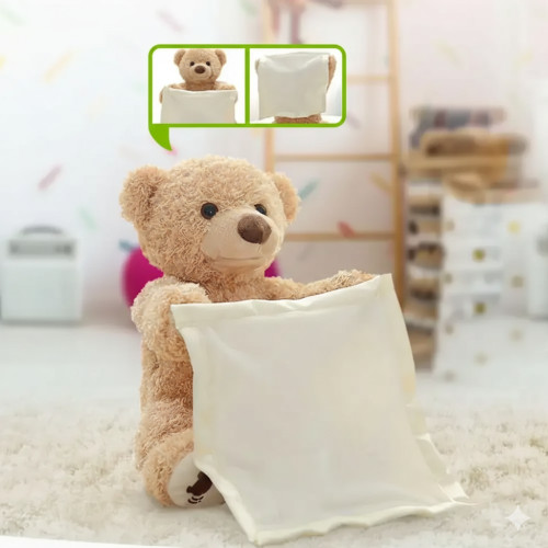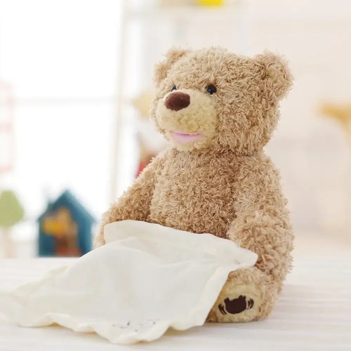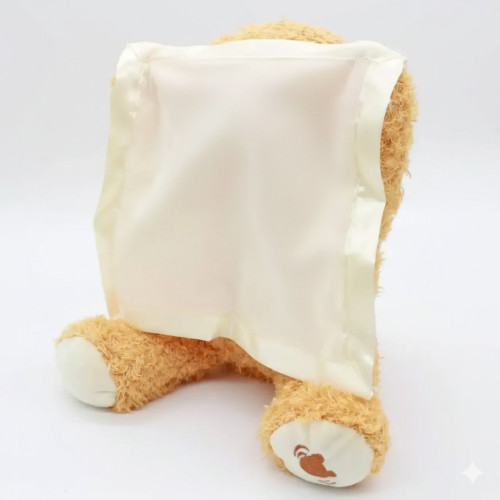 Мишка выполнен в виде очаровательного медвежонка с платочком в лапках. Мишка играет в прятки, изготовлена из высококачественного искусственного меха и имеет мягкий наполнитель, благодаря чему будет безопасна для ребенка. Эта интерактивная игрушка. Нажмите на лапку мишки и он поиграет с ребенком в игру, прячась за платочком.