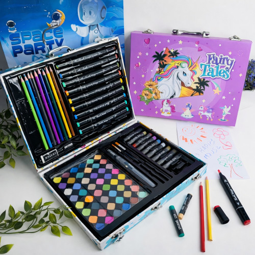Художественный металлический чемодан для рисования — это универсальный набор для творчества, который включает 85 предметов для рисования, раскрашивания и художественного развития. Комплект идеально подходит для детей, подростков и начинающих художников, позволяя создавать рисунки в различных техниках дома, в школе или в дороге.