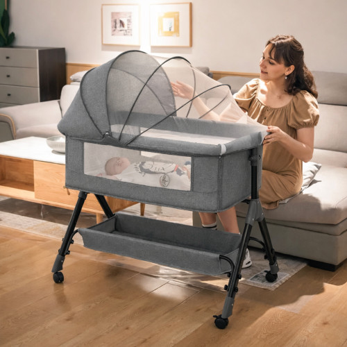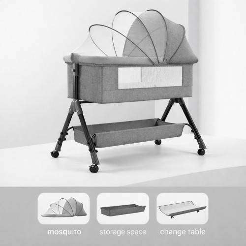 Кроватка выполнена в формате трансформера 4 в 1, что позволяет использовать её в разных режимах в зависимости от возраста ребёнка и потребностей семьи. Большая корзина для хранения под спальным местом идеально подходит для размещения детских принадлежностей, постельного белья, игрушек и других необходимых вещей.