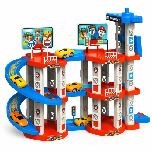 Children's Rail Car MH2004 – это игровой трек-паркинг в формате многоуровневой парковки с двумя башнями, выполненный в тематике «Щенячий патруль». Набор предназначен для детей от 3 лет и сочетает парковочные уровни и спиральные спуски для машинок.