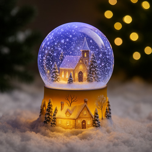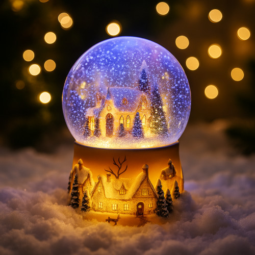 Новогодний Светильник «Домик в Шаре» 15 см с Вращением и Снегопадом (LED, на Батарейках)