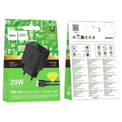 Зарядное устройство от сети HOCO CS82A PD20W 1xType-C + кабель Type-C to Lightning