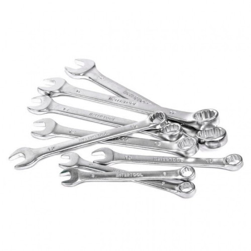 INTERTOOL HT-1202 — это набор из 8 комбинированных ключей, каждый из которых представляет собой сочетание рожкового и накидного гаечного ключа. Размерная линейка набора — от 8; 9; 10; 12; 13; 14; 17; 19 мм. Обе стороны ключей имеют одинаковый размер головки. Рожковая сторона ключей является самой популярной среди соединений и имеет обширную область применения. Накидная сторона ключей, благодаря кольцевому строению, в момент приложения усилия позволяет распределить нагрузку равномерно, что в свою очередь, снижает риск «слизать» грань угла. Ключи изготовлены из хром-ванадиевой стали. Её физические и химические свойства обуславливают высокую устойчивость к механическим нагрузкам, коррозионную стойкость и твердость. Кроме того, эта легированная сталь обладает благоприятным модулем упругости. Удобная форма ключа обеспечивает оптимальные условия для приложения усилия. Ключи поставляются в удобном пластиковом держателе с ручкой и отверстием для подвешивания.