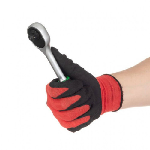 Трещотка на 72 зуба с плавным ходом, быстрым сбросом и фиксацией головок. Позволяет достать до креплений в труднодоступных местах. Рукоятка трещотки двухкомпонентная, благодаря чему не скользит в руках и гарантирует максимум удобства в работе.