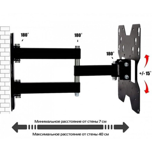 | Комплектация | Кронштейн для телевизора на стену; Крепления для монтажа; Набор дюбелей, болтов, ключей и гаек; Инструкция. |