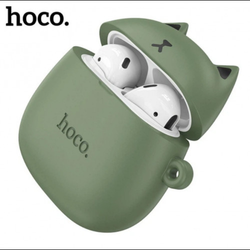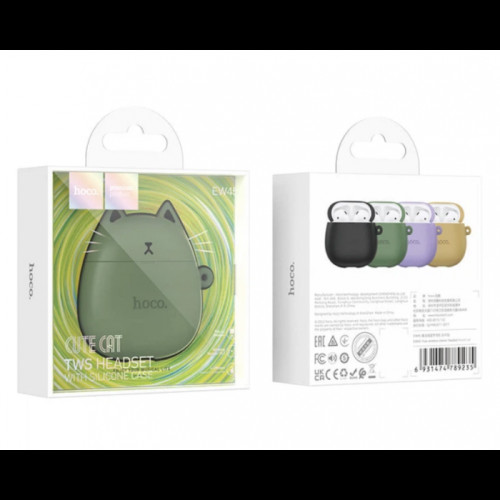 Беспроводные наушники вкладыши в кейсе HOCO EW45 + силиконовый кейс Кот Зелёный