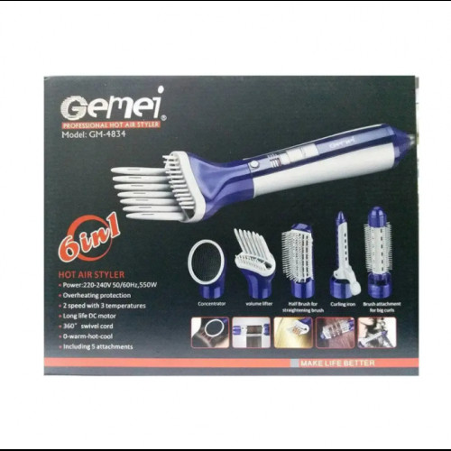 Фен для сушки и укладки волос, модель GM 4834 - Ваш домашний стилист. Универсальный мощный стайлер со множеством функций для создания различных причесок. Это многофункциональный прибор, который поможет девушкам выбрать прическу на любой вкус. Это мелкие и крупные кудри ,объем и многое другое. Мультистайлер является незаменимым средством для ухода за волосами каждой современной девушки.